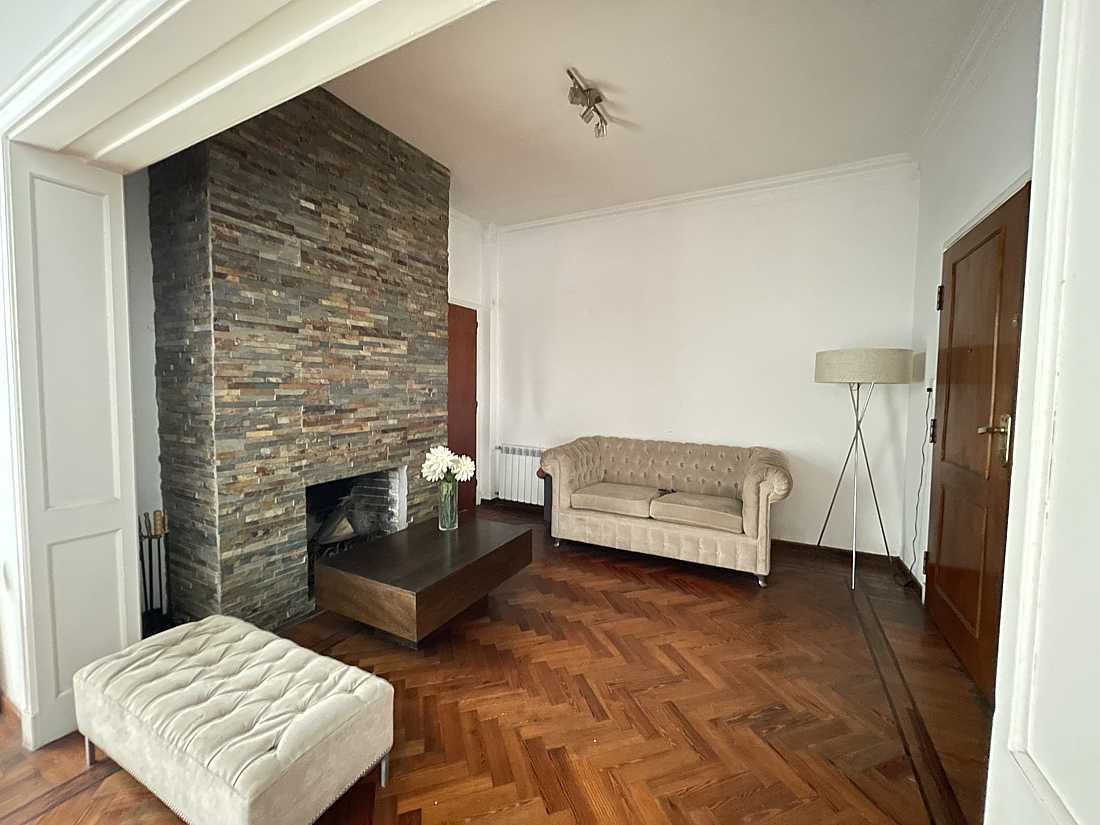 Living-comedor con hogar a leños.