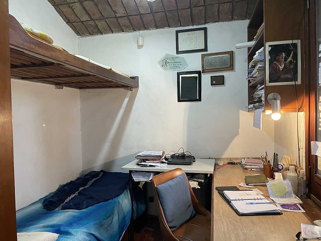 quincho con parrilla y habitación de enseres.